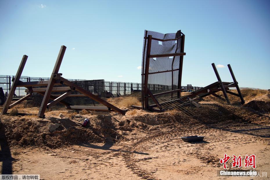 当地时间1月22日,美国新墨西哥州Sunland Park一处边境墙工地内,部分建筑材料被弃置。20日,美国总统拜登签署了要求停止美墨边境墙建设的行政令。