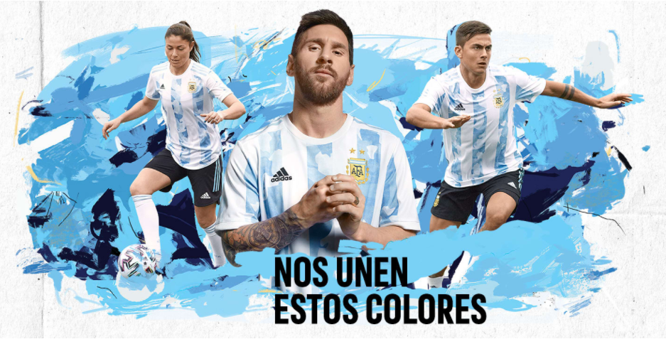 据介绍,本款球衣设计的理念为“这身蓝白让你我相连(Nos unen estos colores)”。其初衷在于表现足球具有超越空间的力量,小到阿根廷的大街小巷,大到全世界,足球在场内场外都能团结众人。在足球和国家队的联系之下,每一位球迷既是独一无二的个体,同时又因为共同的热爱而被连接在了一起。