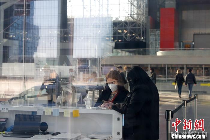 资料图:美国纽约贾维茨中心,民众正在登记注射新冠疫苗。中新社记者 廖攀 摄