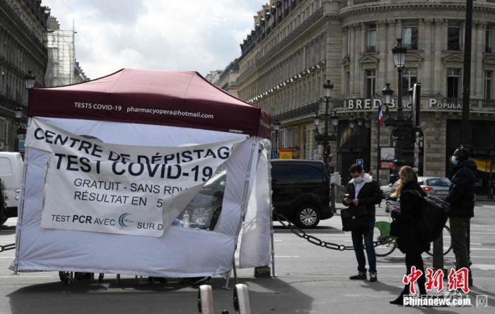 当地时间3月12日,法国卫生部公布的疫情数据显示,法国累计新冠确诊病例超400万例。图为当天人们在巴黎的一处新冠病毒快速检测点前等待接受检测。 中新社记者 李洋 摄