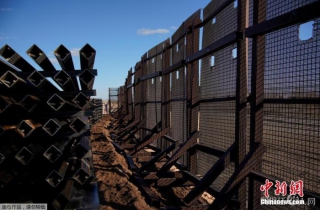 当地时间1月22日,美国新墨西哥州Sunland Park一处边境墙工地内,部分建筑材料被弃置一旁。20日,美国总统拜登签署了要求停止美墨边境墙建设的行政令。