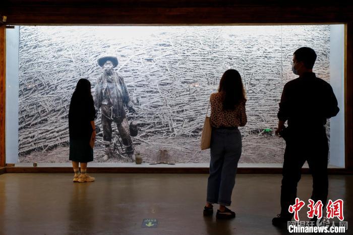 图为江门五邑华侨华人博物馆展示的一张早期中国移民照。该移民被骗往南美甘蔗种植园,工作时还佩戴脚镣。 王骏 摄