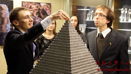 立陶宛100万硬币堆成“金字塔”破世界纪录(图)
