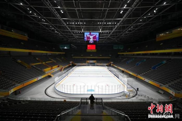 资料图:北京2022年冬奥会及冬残奥会冰球比赛场馆国家体育馆于1月28日完成首次制冰工作,目前场馆具备比赛测试条件。图为已完成制冰的国家体育馆。中新社记者 富田 摄