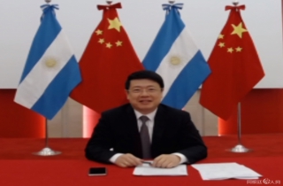 5月13日,驻阿根廷大使邹肖力线上会见阿根廷生产发展部长库尔法斯。