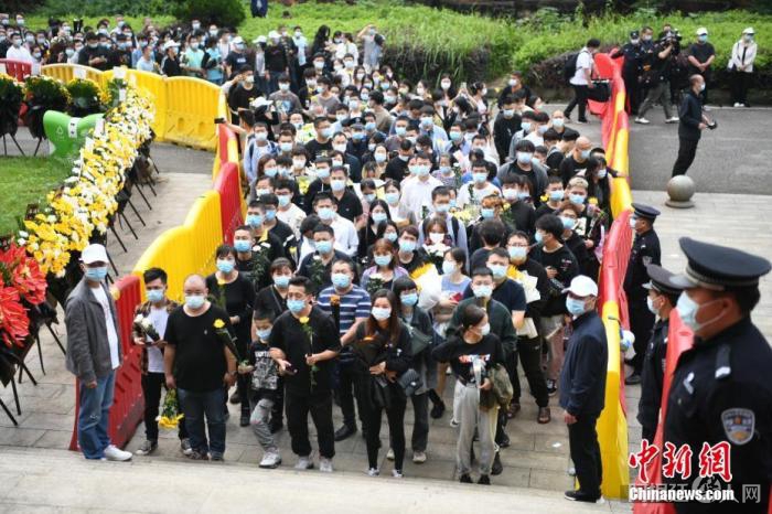 5月24日上午10时,“杂交水稻之父”、“共和国勋章”获得者袁隆平院士遗体送别仪式在长沙市明阳山殡仪馆铭德厅举行。来自各地的民众前往殡仪馆送别袁隆平院士最后一程。图为大量民众排队等待进入殡仪馆送别袁隆平院士。杨华峰 摄
