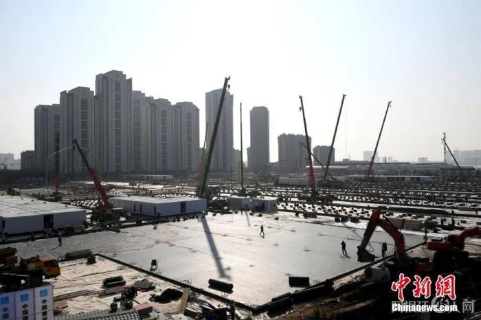 资料图:2020年1月31日,武汉雷神山医院施工现场。中新社记者 安源 摄
