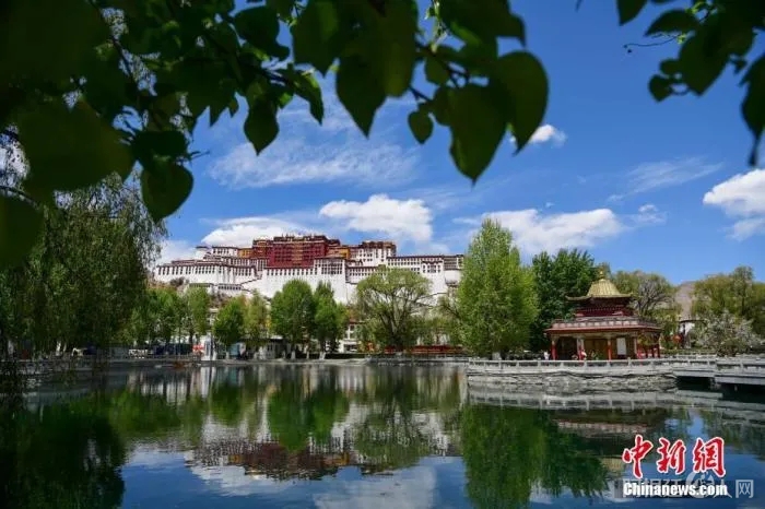 资料图:蓝天白云映衬下的布达拉宫。中新社发 贡嘎来松 摄