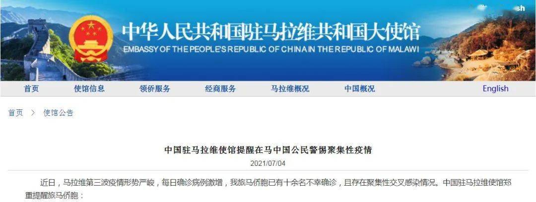 近日,马拉维第三波疫情形势严峻,每日确诊病例激增,中国旅马侨胞已有十余名不幸确诊,且存在聚集性交叉感染情况。