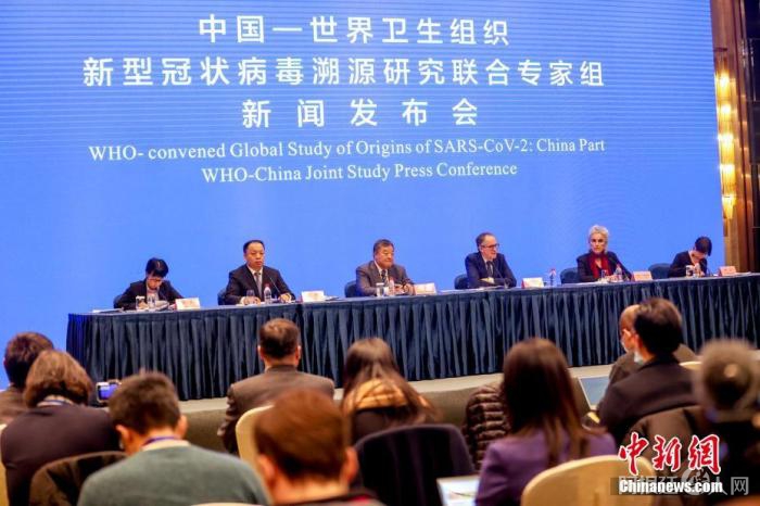 2月9日,中国-世卫组织新冠溯源研究联合专家组在武汉举行新闻发布会,通报共同开展新冠病毒全球溯源中国部分的工作情况。图为新闻发布会现场。 中新社记者 张畅 摄