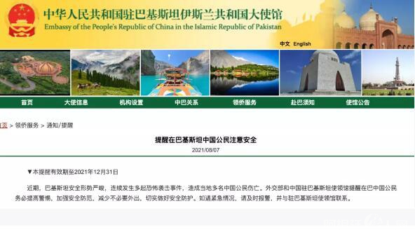 恐袭致多名中国公民伤亡 驻巴基斯坦使领馆提醒务必提高警惕