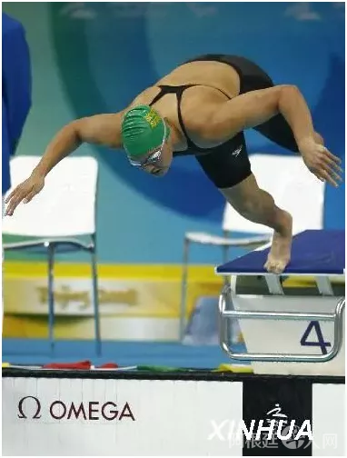 资料图:南非选手纳塔莉·杜托伊特在北京2008年残奥会S9级女子50米自由泳决赛中。新华社记者丁旭摄