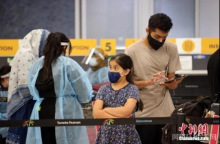 资料图:当地时间9月7日,加拿大多伦多皮尔逊国际机场,刚入境的国际旅客排队办理手续。中新社记者 余瑞冬 摄