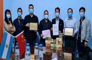 维森特·洛佩兹市华商会都积极发动会员捐款。共募集到164688.67人民币,7287000阿币及1400美金,今天将善款移交给遇难者家属。在疫情期间,虽然都面临一定的经济压力,但还是收到了许多同胞和侨企的爱心捐助,这种大爱义举令人感动。