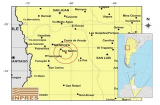 (阿根廷华人网9月29日讯/Andres)据阿根廷国家地震预防机构官方消息,今晨4时53分许,门多萨省发生了里氏5.2级强震,震中位于该省圣马丁市东南方向27公里,省会门多萨市东南69公里处,震源深度为地表下14公里。