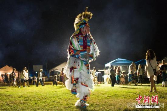 当地时间2019年7月26日,印第安人仲夏歌舞庆典在纽约市皇后区农场博物馆举行,来自美国不同地域的印第安人以歌舞和服饰与纽约民众分享印第安文明。中新社记者 廖攀 摄