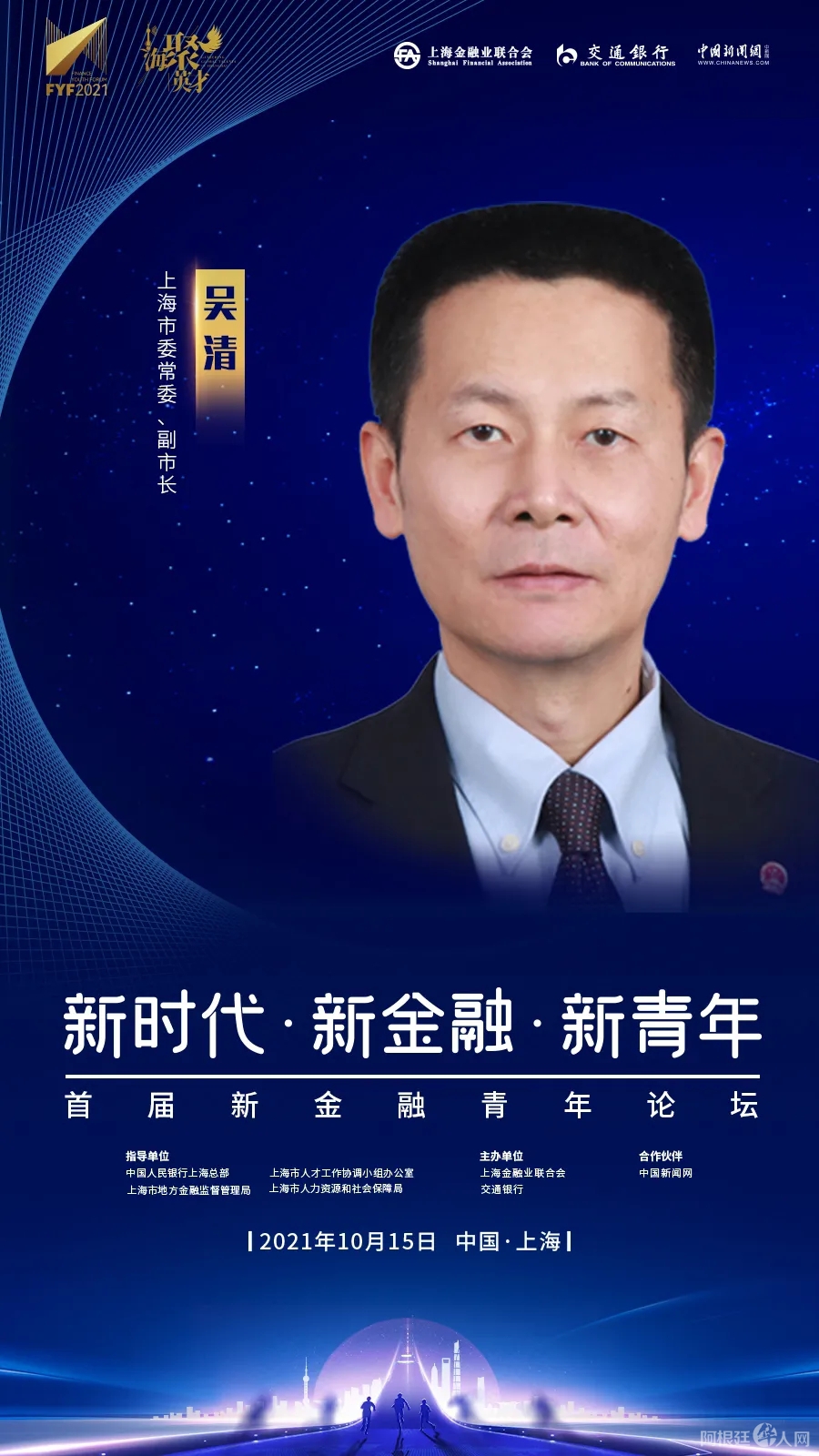 当今世界处于百年未有之大变局,全球国际金融中心版图风起云涌。新时代呼唤着新金融,上海亦迎来新使命,进入新的重大发展阶段。为更好推动新金融青年力量的崛起,助力上海成为国内大循环的中心节点和国内国际双循环的战略链接,支持长三角和全国经济高质量发展,强化上海国际金融中心全球资源配置功能,2021年10月15日,主题为“新时代·新金融·新青年”的首届新金融青年论坛将在国家会议中心(上海)隆重举行,共襄盛举,共创未来!