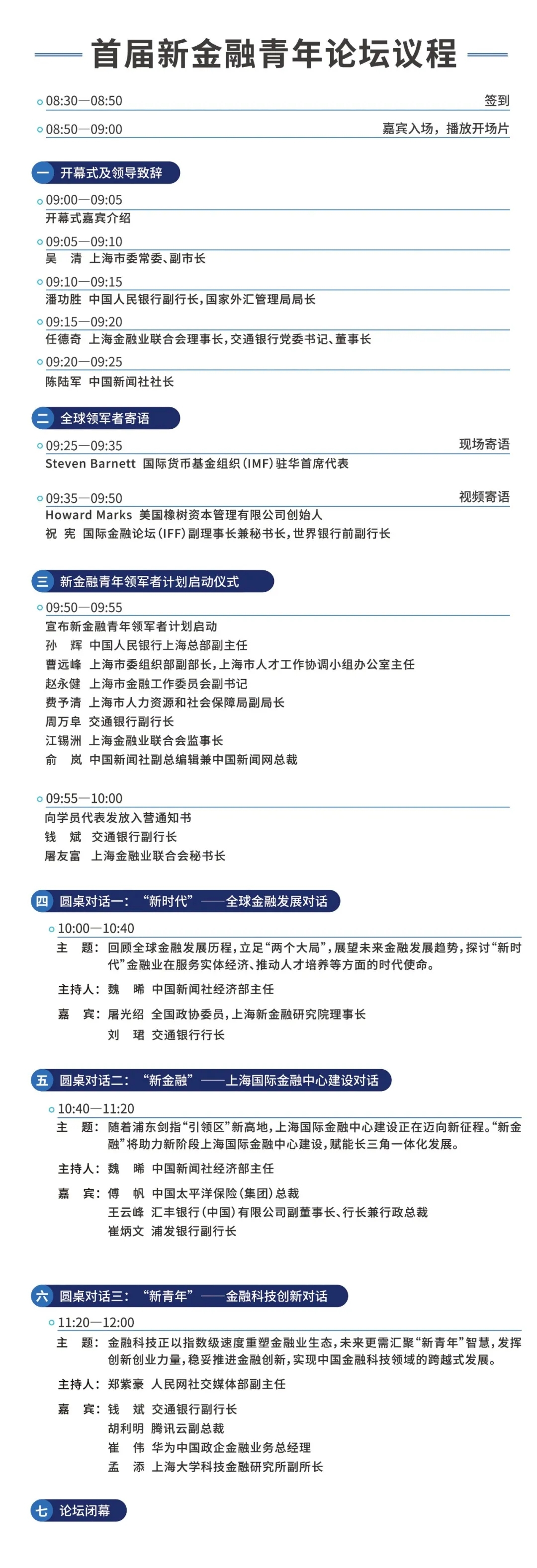 汇聚理论界和实践界的智慧,探讨新时代的新金融发展和新青年使命,本次论坛特设开幕式及领导致辞、全球领军者寄语、新金融青年领军者计划启动仪式、圆桌对话等环节。