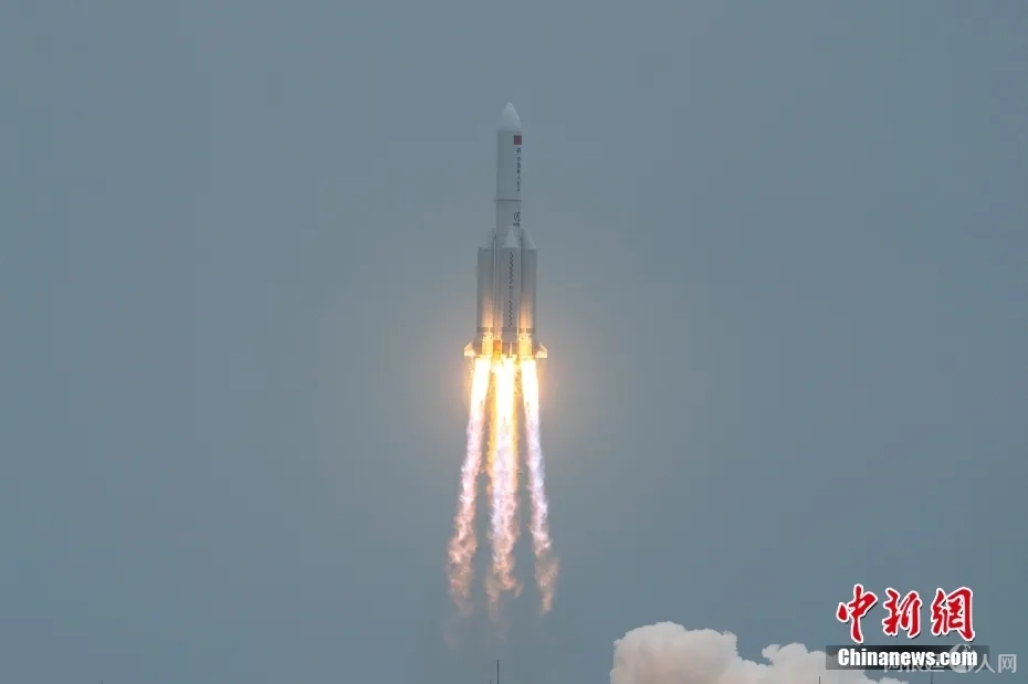 资料图:北京时间2021年4月29日11时许,中国在文昌航天发射场用长征五号B遥二运载火箭发射空间站天和核心舱。中新社记者 骆云飞 摄