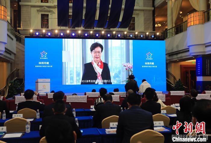 香港特别行政区行政长官林郑月娥通过视频致辞表示,成渝地区发展空间广阔,是香港融入国家发展大局的理想台阶,香港特区政府会继续积极支持港商参与成渝地区的发展,相信港企凭借自身的独特优势,与内地企业携手合作,定能为成渝地区成为具有全国影响力的重要经济中心做出贡献。