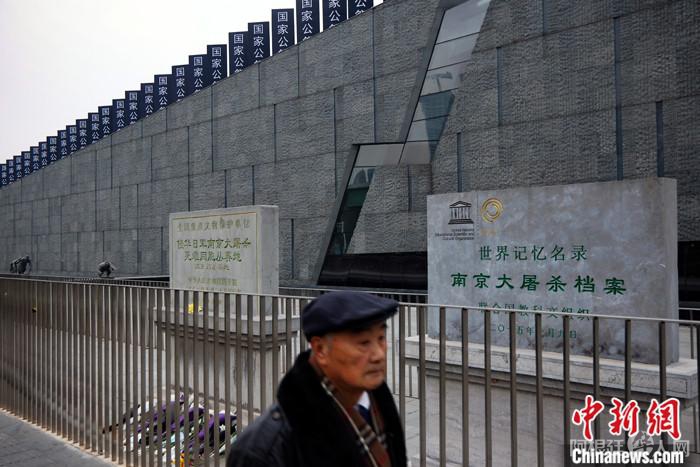 图为一位老者在侵华日军南京大屠杀遇难同胞纪念馆外参观。(资料照片) 中新社记者 泱波 摄
