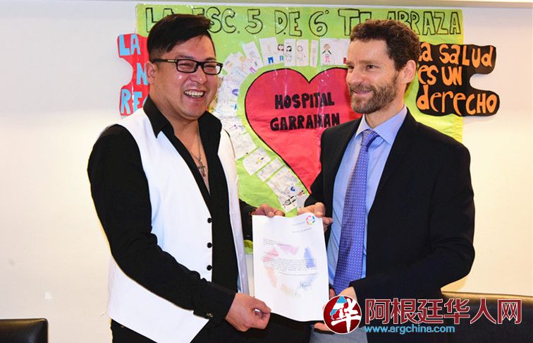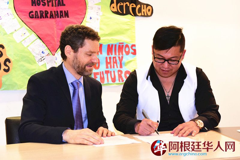 (阿根廷华人网9月22日讯 柳 军/文、图)昨天下午,著名的阿根廷儿童医疗基金会举行仪式,授予华人歌手张金良(阿龙)为该基金会慈善形象大使称号,这是该基金会首次授予华人荣誉称号。同时,华人歌手张金良(阿龙)还与该基金会签署了捐赠协议,张金良(阿龙)将在11月27日首都国家戏院(Teatro Nacional)举办个人慈善演唱会,所得售票款将全部捐赠给该基金会。