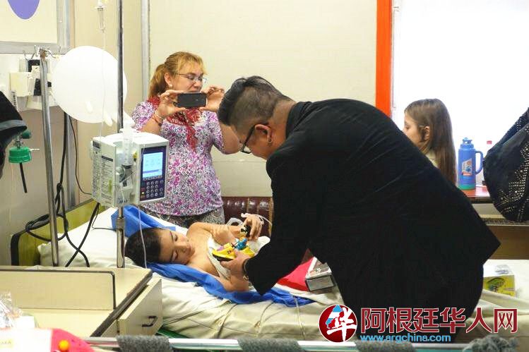今年阿根廷儿童节期间,张金良(阿龙)曾携带玩具来到阿根廷儿童医疗基金全力支持的布市重症及器官移植儿童医院看望慰问住院儿童,将玩具赠送给每位儿童手中,并为他们演唱了中国歌曲,使孩子们度过了一个愉快的节日。