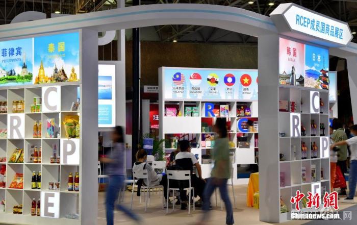 在福州举行的第四届21世纪海上丝绸之路博览会上,观众在RCEP成员国商品展区了解展品。 张斌 摄