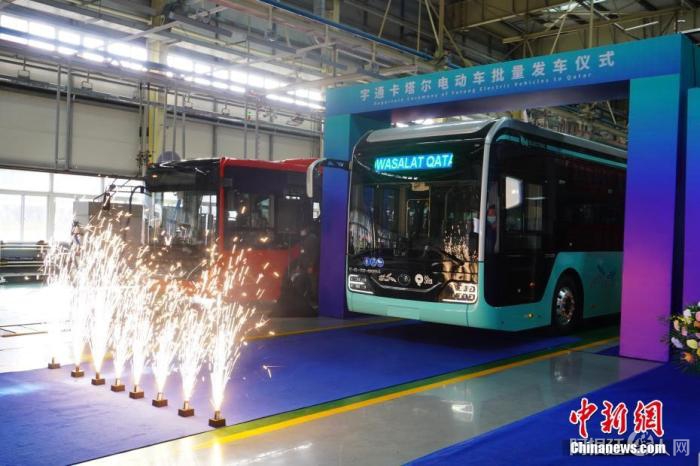 12月17日下午,741台“卡塔尔世界杯”纯电动服务用车从郑州宇通公司正式发运,将沿海上“丝绸之路”直抵卡塔尔交付。 中新社记者 刘鹏 摄