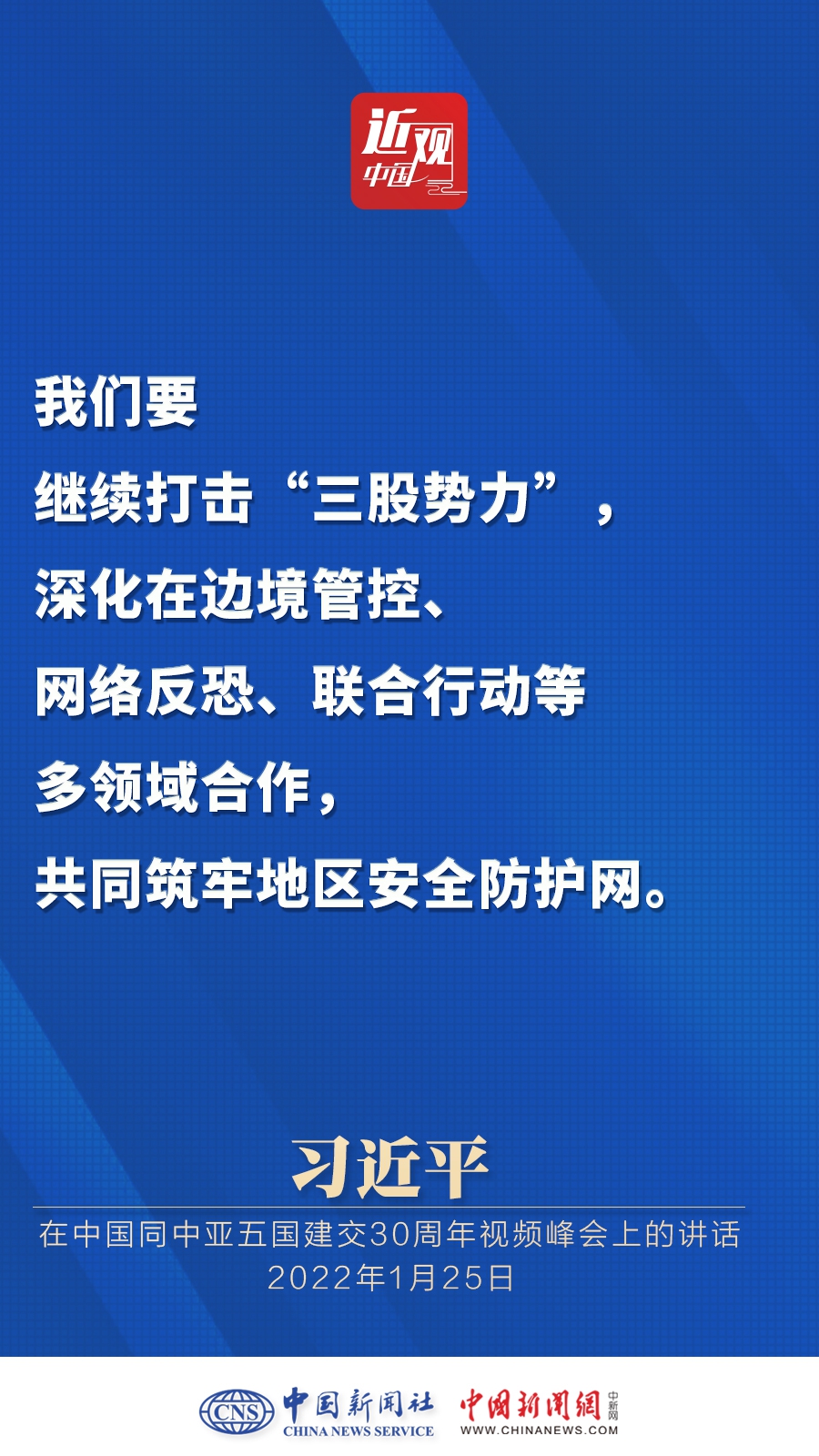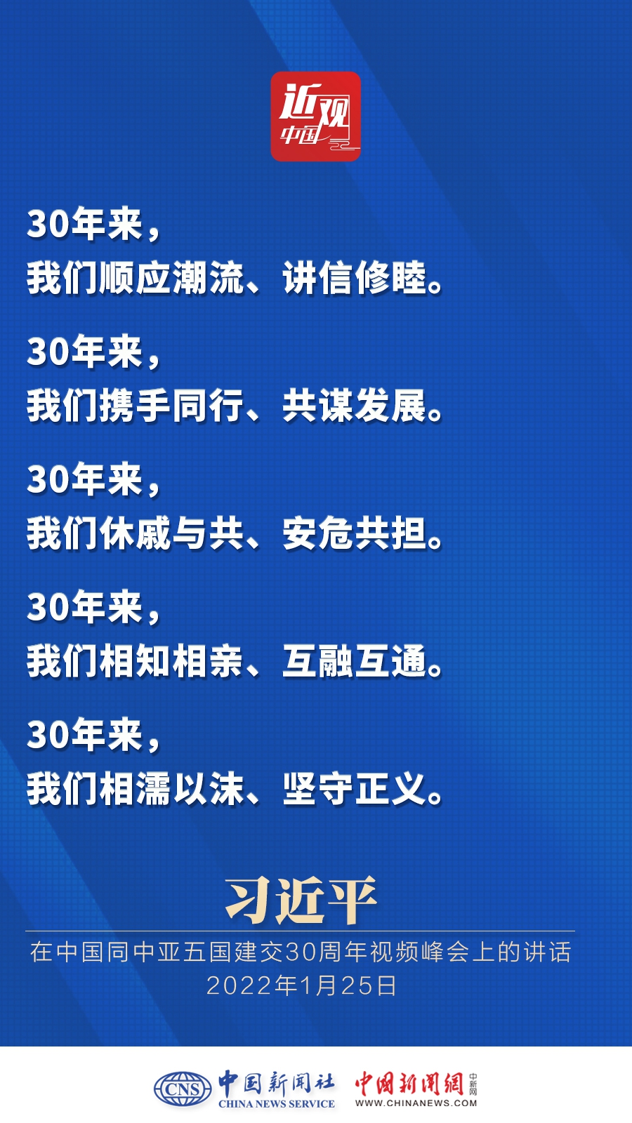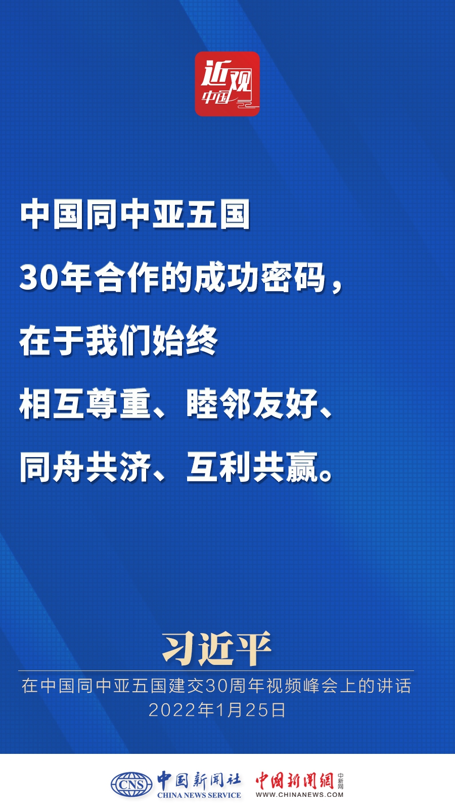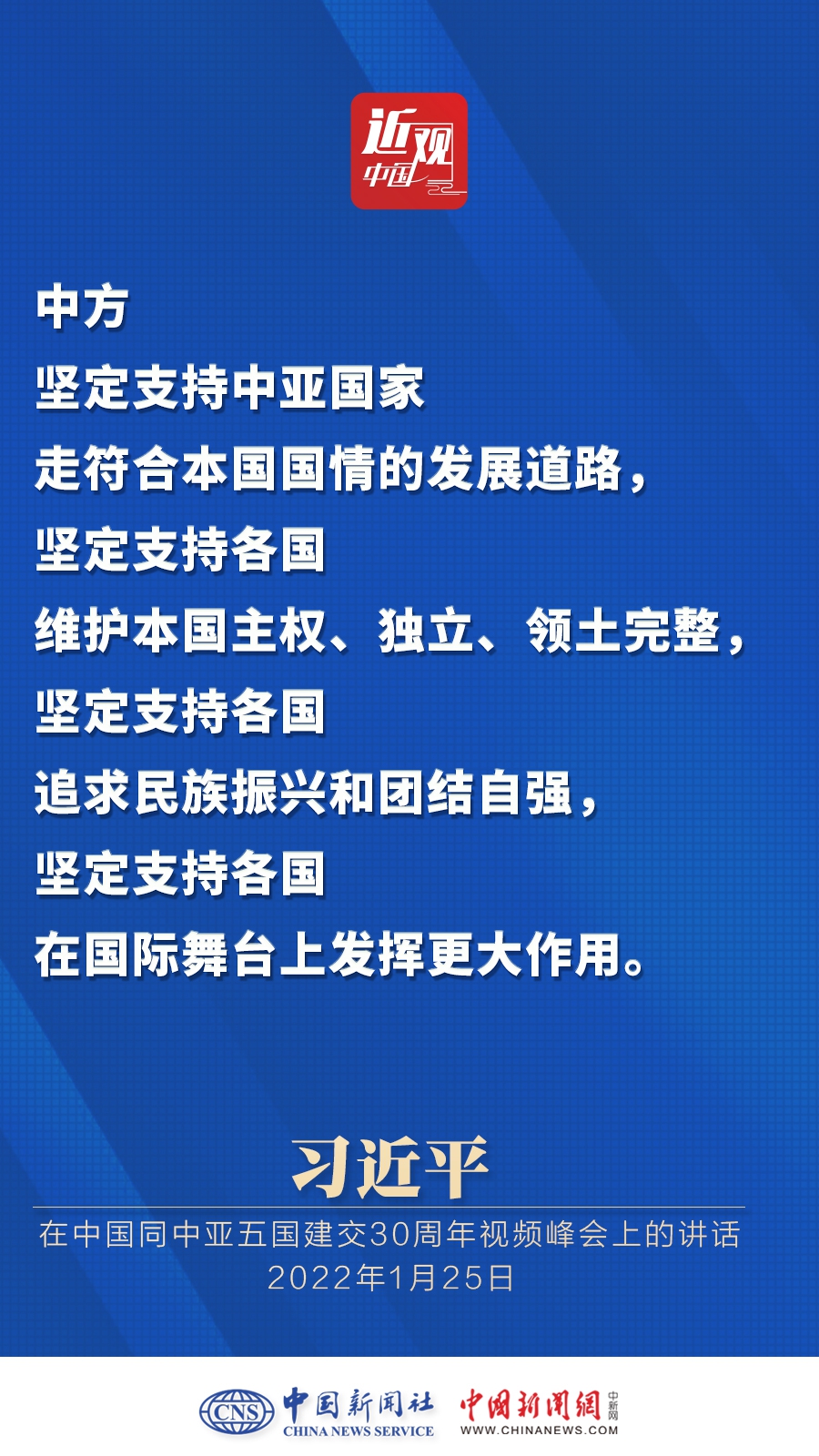 国家主席习近平25日下午在北京主持中国同中亚五国建交30周年视频峰会并发表重要讲话。他指出——