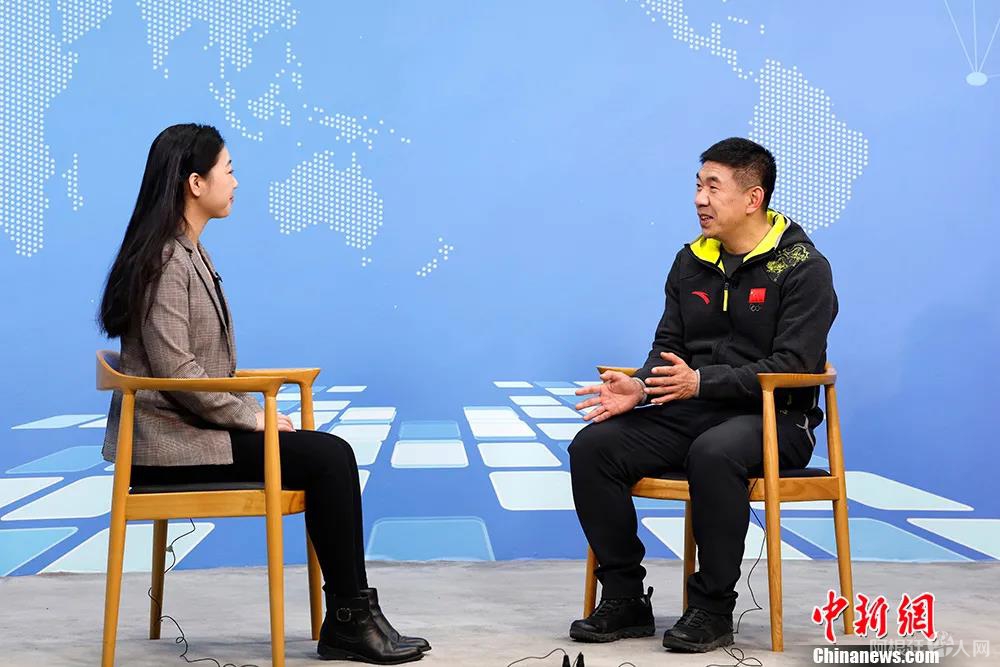 中新社“中国焦点面对面”专访中国首位男子冬奥会奖牌得主李佳军。中新社记者 富田 摄
