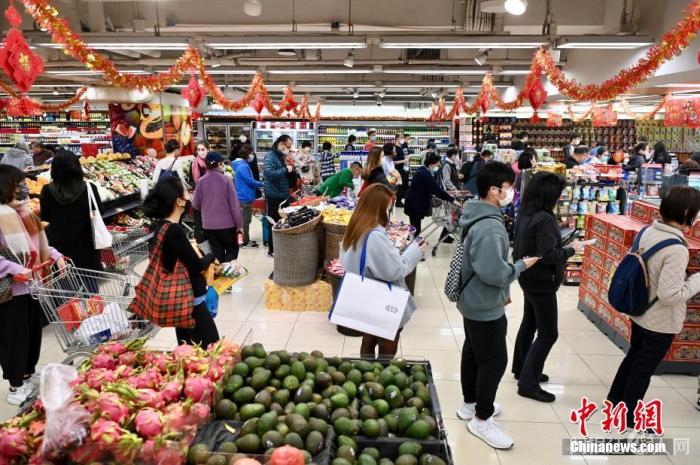 2月8日下午,香港特区政府宣布收紧防疫措施安排,并将商场、百货公司、街市、超市等纳入表列处所。图为香港市民于超市购物。 中新社记者 李志华 摄