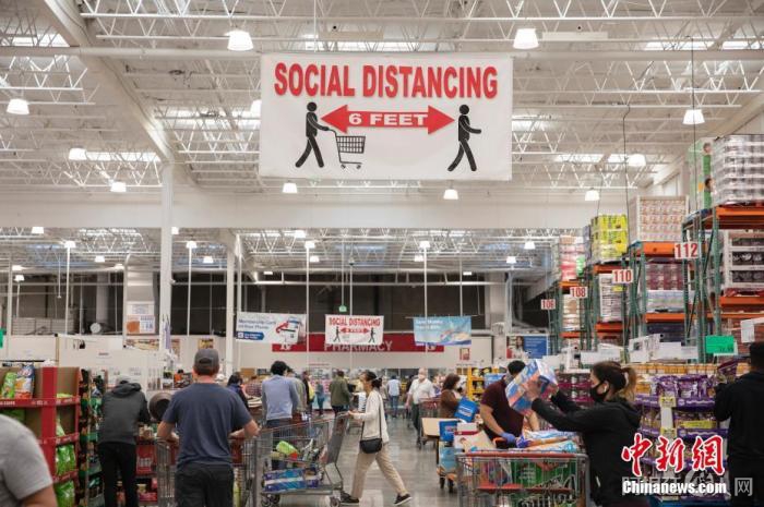 资料图:美国得克萨斯州休斯顿地区糖城(Sugar Land)的一家沃尔玛超市内,顾客们戴口罩购物。中新社记者 曾静宁 摄