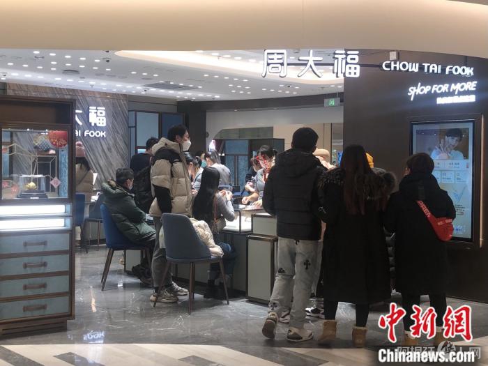 情人节前,消费者在黄金饰品店购物。 中新网 左宇坤 摄