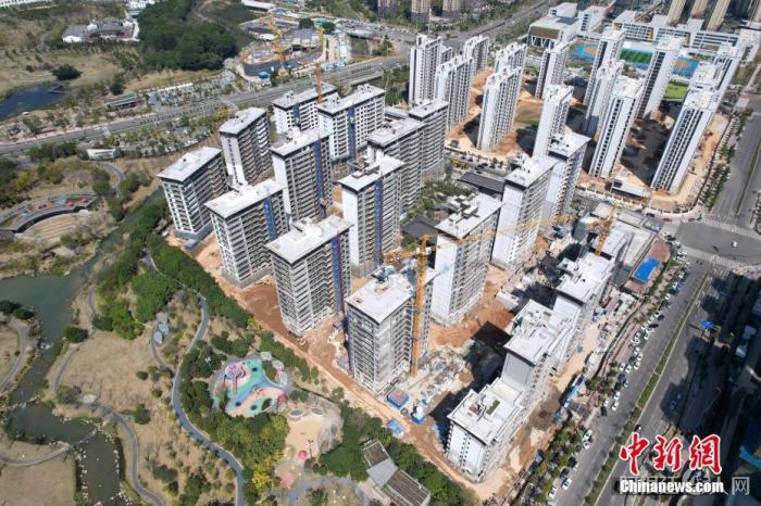 图为3月11日,航拍福州一正在建设中的楼盘。(无人机照片) 中新社记者 王东明 摄