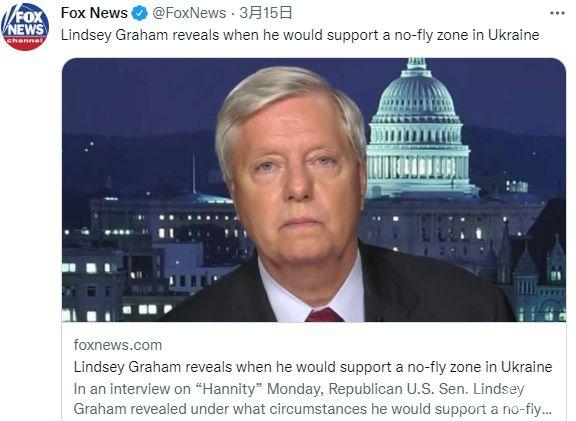 这位美国议员还支持在乌克兰设立“禁飞区”。图片来源:福克斯新闻报道截图。