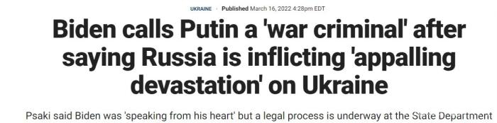 白宫新闻秘书普萨基在简报中表示,拜登的言论反映了他的“心声”。不过,普萨基也指出,美国务院仍在就俄在乌军事行动开展法律审查,研究俄是否构成“战争罪”。