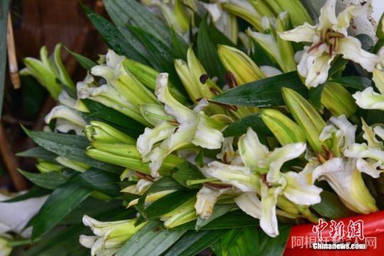 现场有鲜花提供给乘客家属。中新社记者 王以照 摄