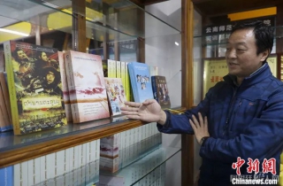 图为2021年11月3日,云南昆明的一个文创产业园内,一个译制团队的负责人在介绍已经译制出口的影视剧。 中新社记者 李嘉娴 摄