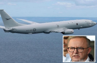 澳大利亚皇家空军P-8A海上巡逻机,右下角为澳新任总理阿尔巴尼斯。图片来源:澳大利亚新闻网