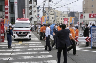 日本总务省消防厅消息,日本前首相安倍晋三右颈部有枪伤并有出血,此外,左胸皮下也有出血。当地时间8日11时30分许,正在日本奈良市进行街头演说的安倍晋三遭枪击倒地。(日本《岩手日报》)