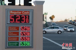 当地时间3月6日,车辆经过美国加州圣马特奥县一处加油站。