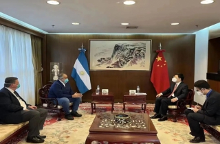 邹大使表示,今年是中阿建交50周年和中阿友好合作年。阿根廷产业工人始终是两国友好合作的见证者、参与者和受益者,阿总工会同中华全国总工会的交流为促进双方相互了解和民心相通发挥了积极作用。费尔南德斯总统2月访华以来,中阿关系迈入更高水平发展新阶段,双方扩大在基础设施建设、清洁能源、农业和矿业开发、数字经济等领域合作,将为阿创造更多就业岗位,提升阿产业竞争力,造福阿社会民生,希望得到阿总工会的支持和配合。邹大使赞赏阿总工会应邀参加由中华全国总工会举办的第十一届金砖国家工会论坛,为扩大“金砖+”合作进一步凝聚了共识。邹大使介绍了在中国共产党领导下中国工会发展历程和新时期的任务、特点,表示中方愿同阿方加强交流,聚焦发展和民生福祉,提升劳动者素质,保护劳动者合法权益,在相关国际组织中密切协调配合,维护好共同利益,共创新兴市场国家和发展中国家工会团结合作的美好未来。