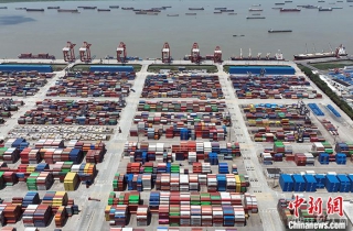 资料图为5月6日,航拍南京龙潭港进出口集装箱码头。 中新社记者 泱波 摄
