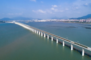 中国铁路南昌局集团有限公司相关负责人介绍,由于海上水文环境复杂,风险系数高,新建福厦铁路全线铺轨有三处难度极大的施工地点,分别为湄洲湾、泉州湾、安海湾三座跨海大桥。为此,施工单位采用国内先进的本邻两线铺轨作业设备,左右两线长钢轨同时铺设,比传统铺轨机组提高60%的作业效率,日进度可铺设长轨约6公里,为新建福厦铁路按期开通打下坚实基础。