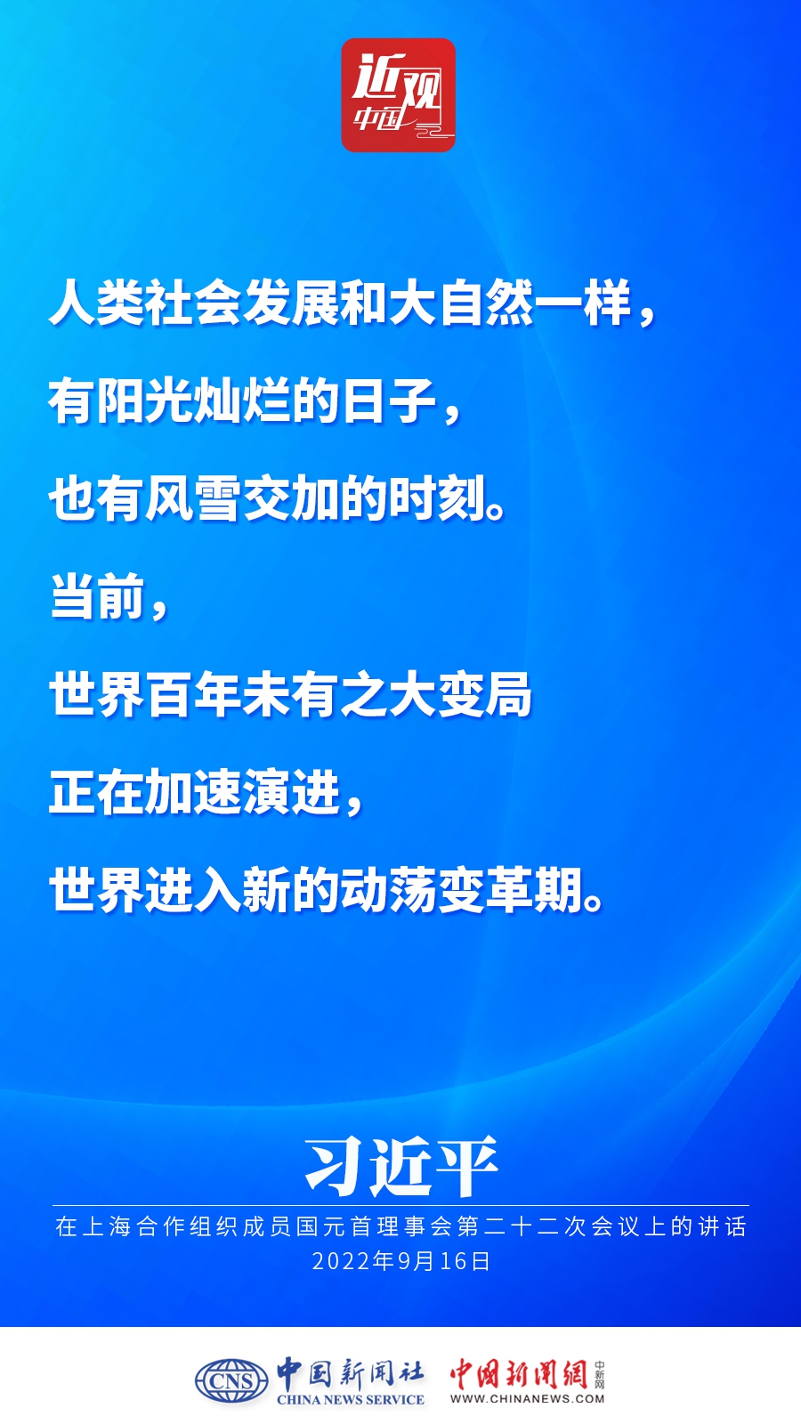 当地时间9月16日,国家主席习近平在撒马尔罕出席上海合作组织成员国元首理事会第二十二次会议,并发表题为《把握时代潮流 加强团结合作 共创美好未来》的重要讲话。习近平指出——