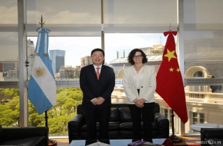11月7日,驻阿根廷大使邹肖力在阿外交部会见国际经济关系国务秘书托德斯卡。