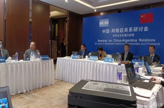 11月11日,中国人民外交学会和阿根廷国际关系理事会共同主办“中阿关系机遇与前景”研讨会。中国驻阿根廷大使邹肖力发表视频致辞。中国人民外交学会副会长李杰、阿根廷国际关系理事会主席博尔顿等两国学界代表参加。