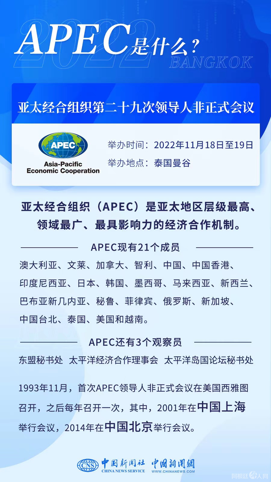 第二场的多边会议是于11月18日至19日在泰国曼谷举行的亚太经合组织第二十九次领导人非正式会议,主题为“开放、联通、均衡”。这是三年来APEC第一次在线下召开会议,21个经济体的领导人将迎来三年来首次重新聚首。