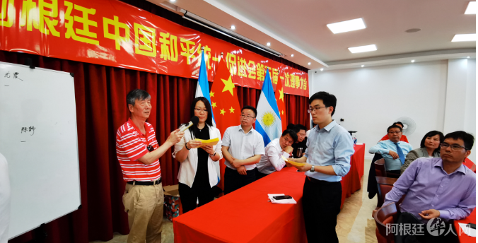 监票人宣布选举结果,何文强当选第五届阿根廷中国和平统一促进会会长。